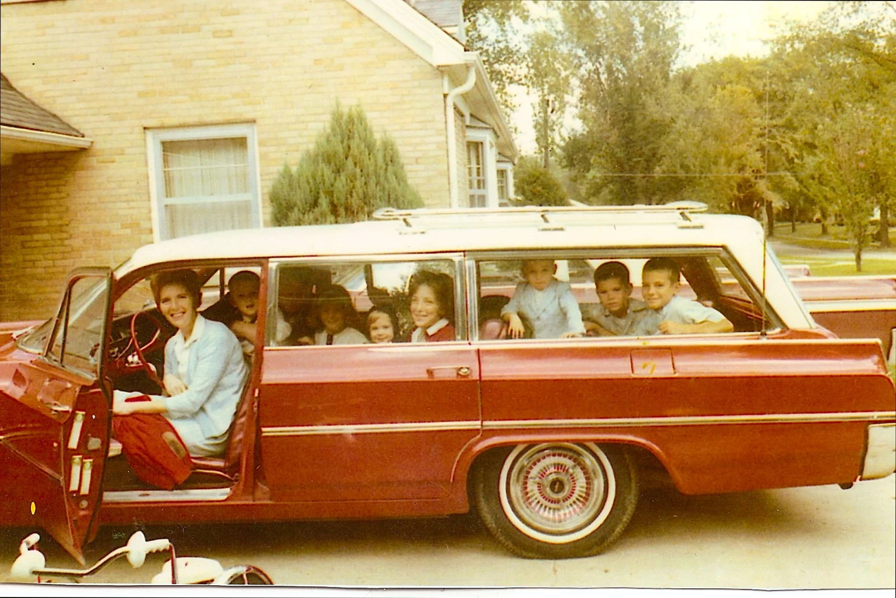 How you grow up says a lot about a person. No doubt I am defined by being the youngest of 8 kids. And apparently I like to live dangerously judging from the lack of seatbelts in this photo. Way to go mom...I'm the little head peaking up over the passenger door.